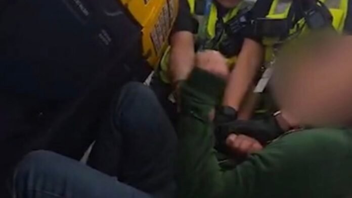 Stunning video captures the chaotic situation aboard a Ryanair flight where a reportedly intoxicated passenger clashed with law enforcement officials. The incident unfolded when the disruptive traveler refused to comply with crew instructions during the descent towards Bristol Airport, causing the plane to circle overhead on November 11.