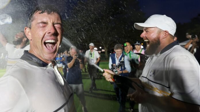 Team Europe reportedly ran up a bar tab of £230,000 while celebrating their Ryder Cup victory in New York. The players, along with support staff and their families, indulged in champagne at the Bethpage Black golf course after defeating the U.S. team. Videos showed the group enjoying drinks on the bus ride back, singing along to music.